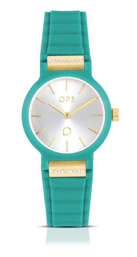 Il fondello è in acciaio e il cinturino in silicone colorato con pattern a rilievo.