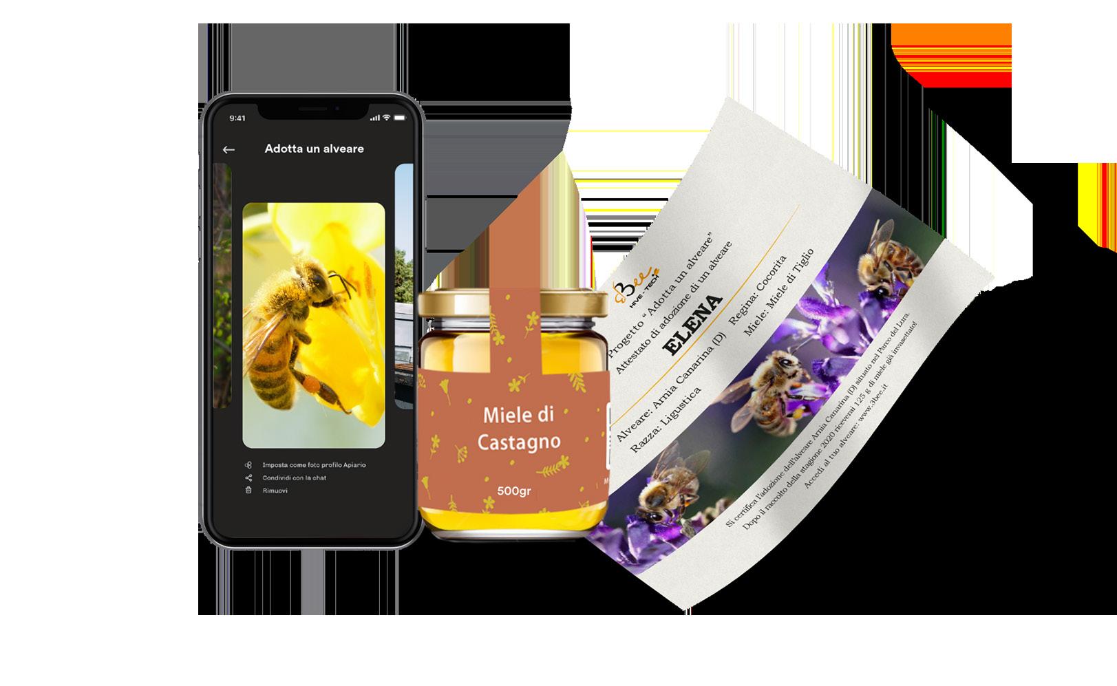 Il piano prevede: 1.000 api protette, 1 milione di fiori impollinati, certificato adozione personalizzato, monitoraggio alveare via app, 500 g di miele artigianale spedito a casa.