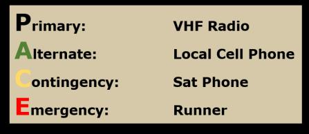 It is important to think about emergency communication by developing protocols to notify the right people and authorities during a medical emergency, create clear communication channels such as phone systems, two-way radios, or other tools and, very importantly, train individuals on how to communicate effectively in emergency situations. When developing your communication plan, it is useful to follow the PACE framework, standing for Primary, Alternate, Contingency and Emergency