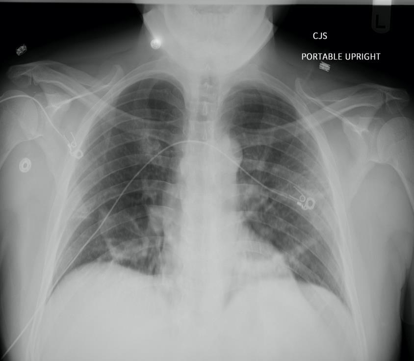 His complete blood count, basic metabolic panel, and venous lactate were baseline for him. His portable chest x-ray is shown.