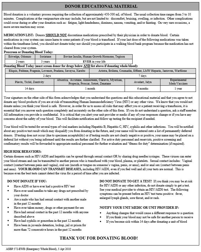 The following excerpts are from the Joint Trauma System (JTS) clinical practice guideline on how to safely harvest and administer whole blood in a field environment. For further details, please visit https://jts.amedd.army.mil/assets/docs/cpgs/JTS_Clinical_Practice_Guidelines_(CPGs)/Whole_Blood_T ransfusion_15_May_2018_ID21.pdf