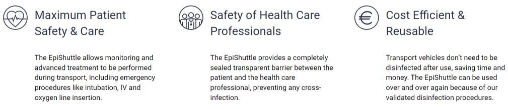The EpiShuttle is an isolation unit designed for quick and easy transport of highly infectious and vulnerable patients.
