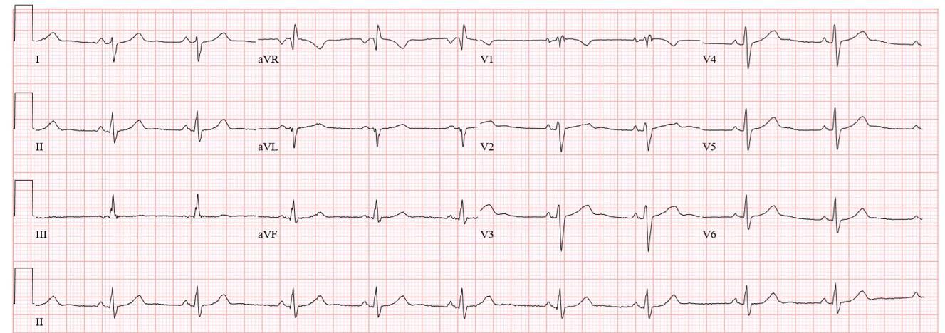 During your clinical rotation through Komfo Anokye Teaching Hospital in Ghana, a 55year-old female patient with dyspnea is admitted and you are asked to review the patient’s 12-lead. What working diagnosis could you form based solely upon this ECG?