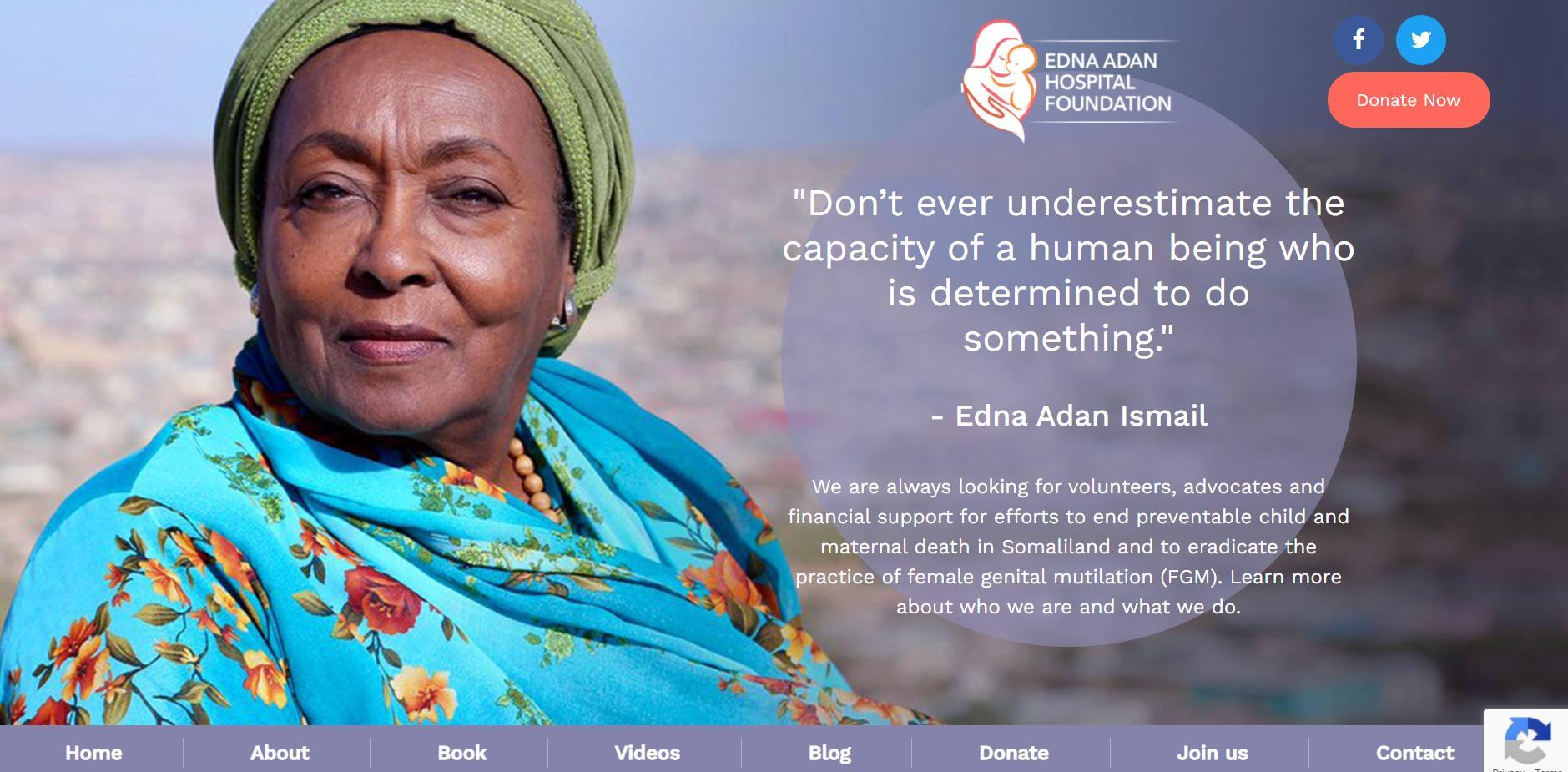 She is the director and founder of the Edna Adan Maternity Hospital in Hargeisa, which opened in 2002, and an activist and pioneer in the struggle for the abolition of female genital mutilation. She is also President of the Somaliland Association for Victims of Torture.