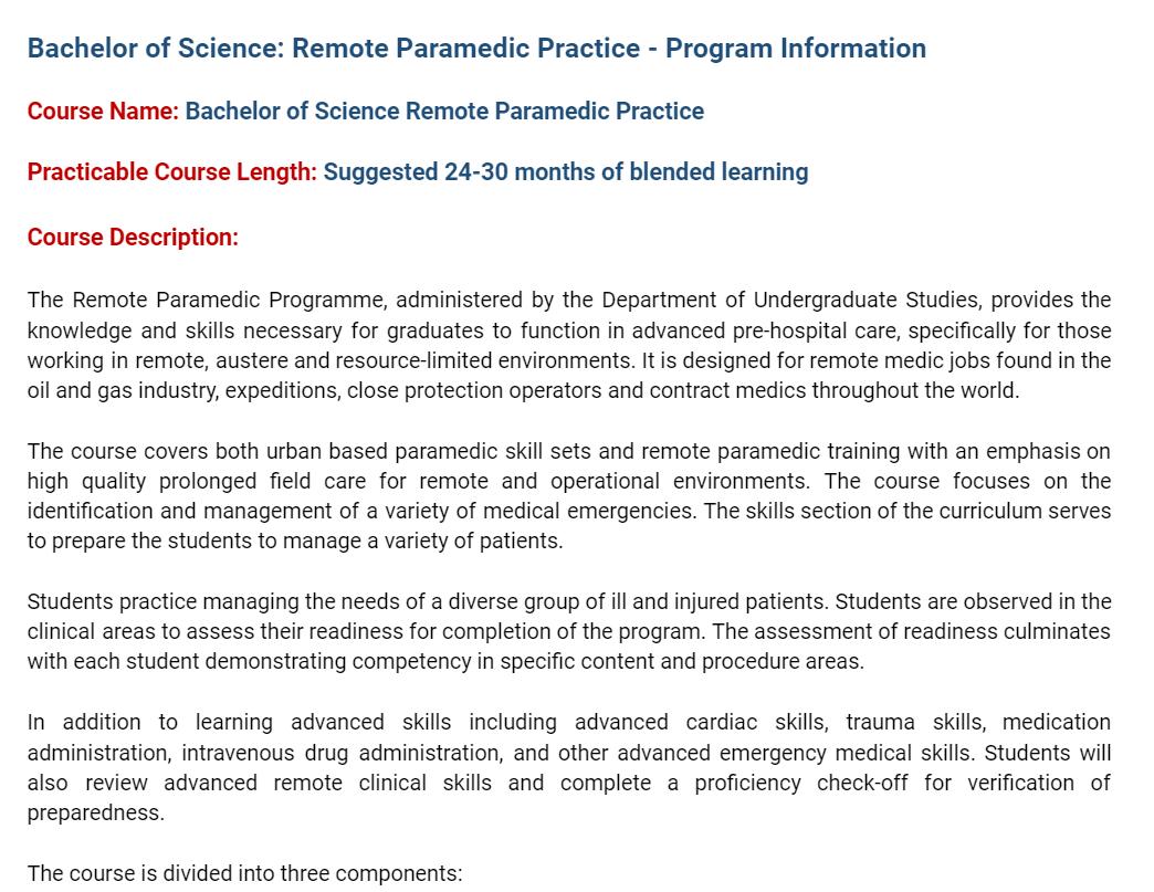 Bachelor of Science Remote Paramedic Practice