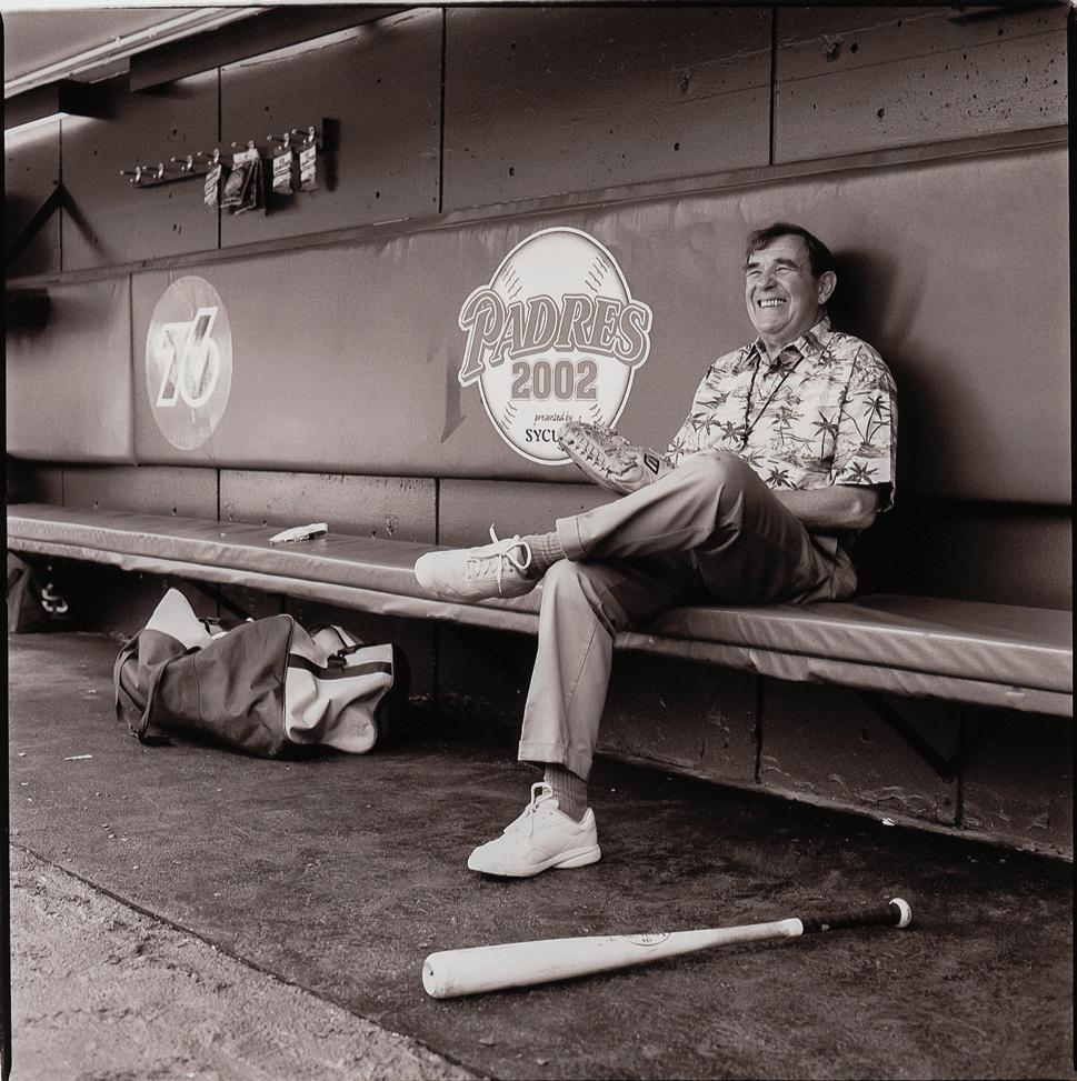 After he left the Navy, the now 85-yearold San Diego resident joined the San Diego Padres as director of military marketing. Howren captured him sitting in the dugout at Qualcomm Stadium, where the Padres played prior to Petco Park.