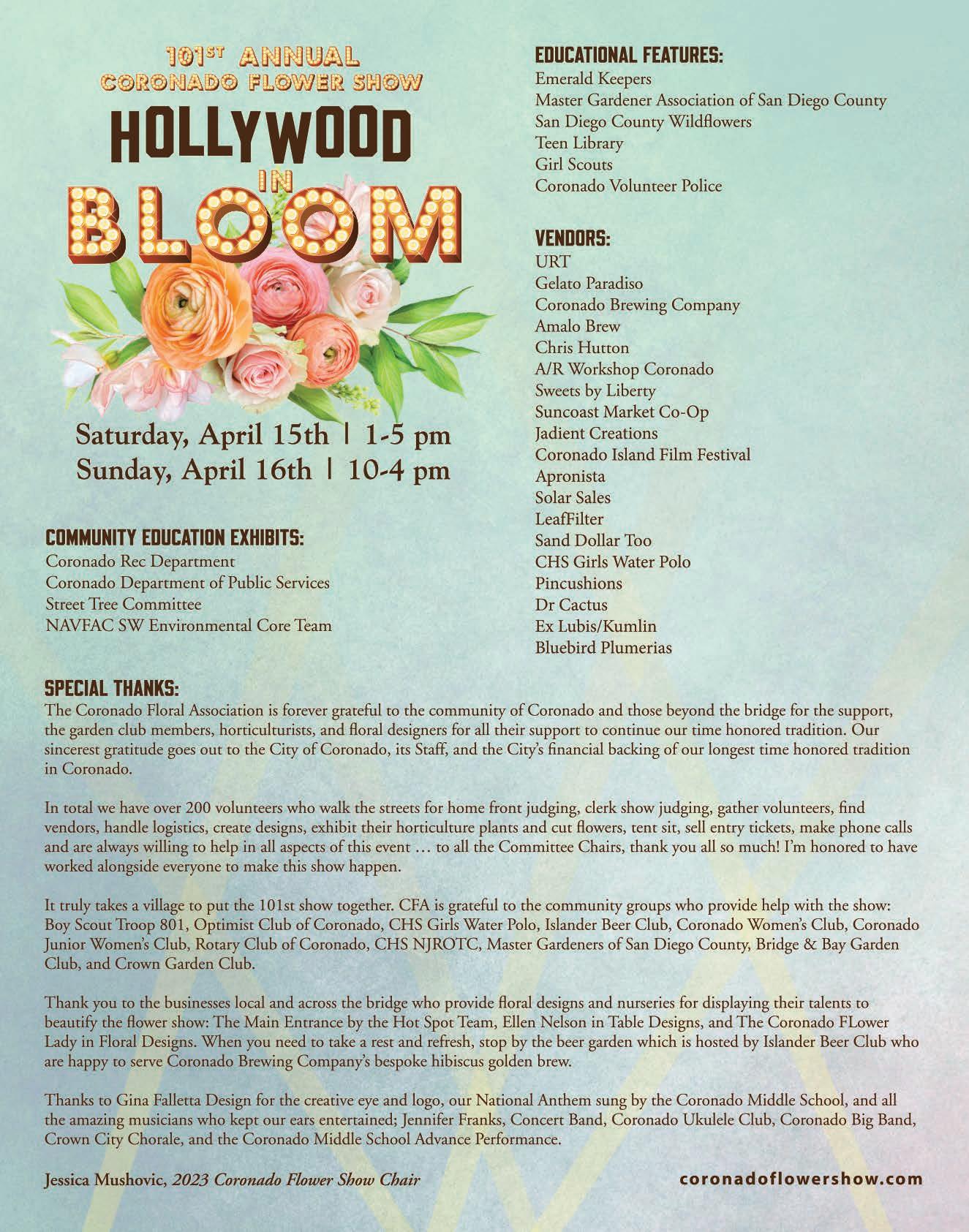 This April’s edition of the Coronado Magazine brings you the 101st Coronado Flower Show!