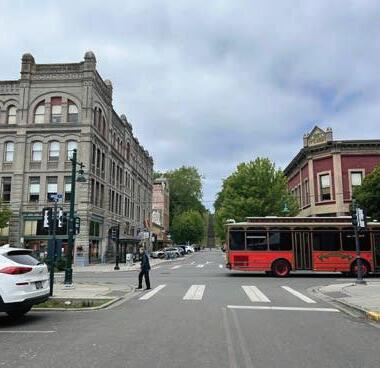 Murals enliven Port Angeles’s historic downtown. The MV Kalakala mural depicts a ferry boat that operated in the Puget Sound for four decades.