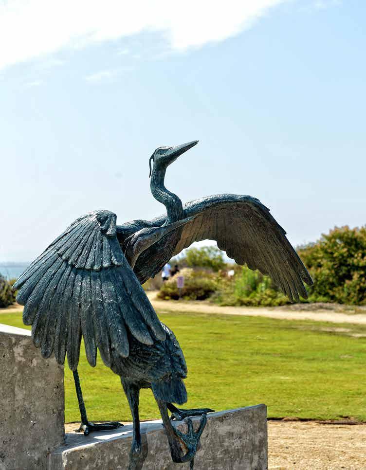 Perhaps renowned artist Christopher Slatoff had this in mind when he created the sculpture of Sheltering Wings at Grand Caribe Shoreline Park, 598 Grand Caribe Causeway, 25 years ago this summer. The sculpture depicts a Great Blue Heron mother sheltering her young offspring. His sculpture has anchored and aged with this park and nurtured appreciation for public art in Coronado. “Sheltering Wings” was the first Port-owned public art piece in Coronado. Since that installation the Port’s collection in Coronado has grown to eight pieces with the latest, “Penelope,” dedicated in Tidelands in 2019.