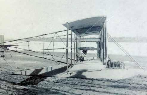 air flight would have a profound effect on the army’s future, and Frederick Walker Baldwin, a hydrofoil and aviation pioneer. The group set up shop in Hammondsport and over the next two years produced four aircrafts, each improving on the design of the previous one. The third design was the June Bug and on July 4, 1908, Curtiss flew the plane 5,080 feet to capture the Scientific American Trophy and its cash award. This was considered the first publicly announced, officially witnessed “heavier-than-air” flight in America and shot Curtiss into further fame.