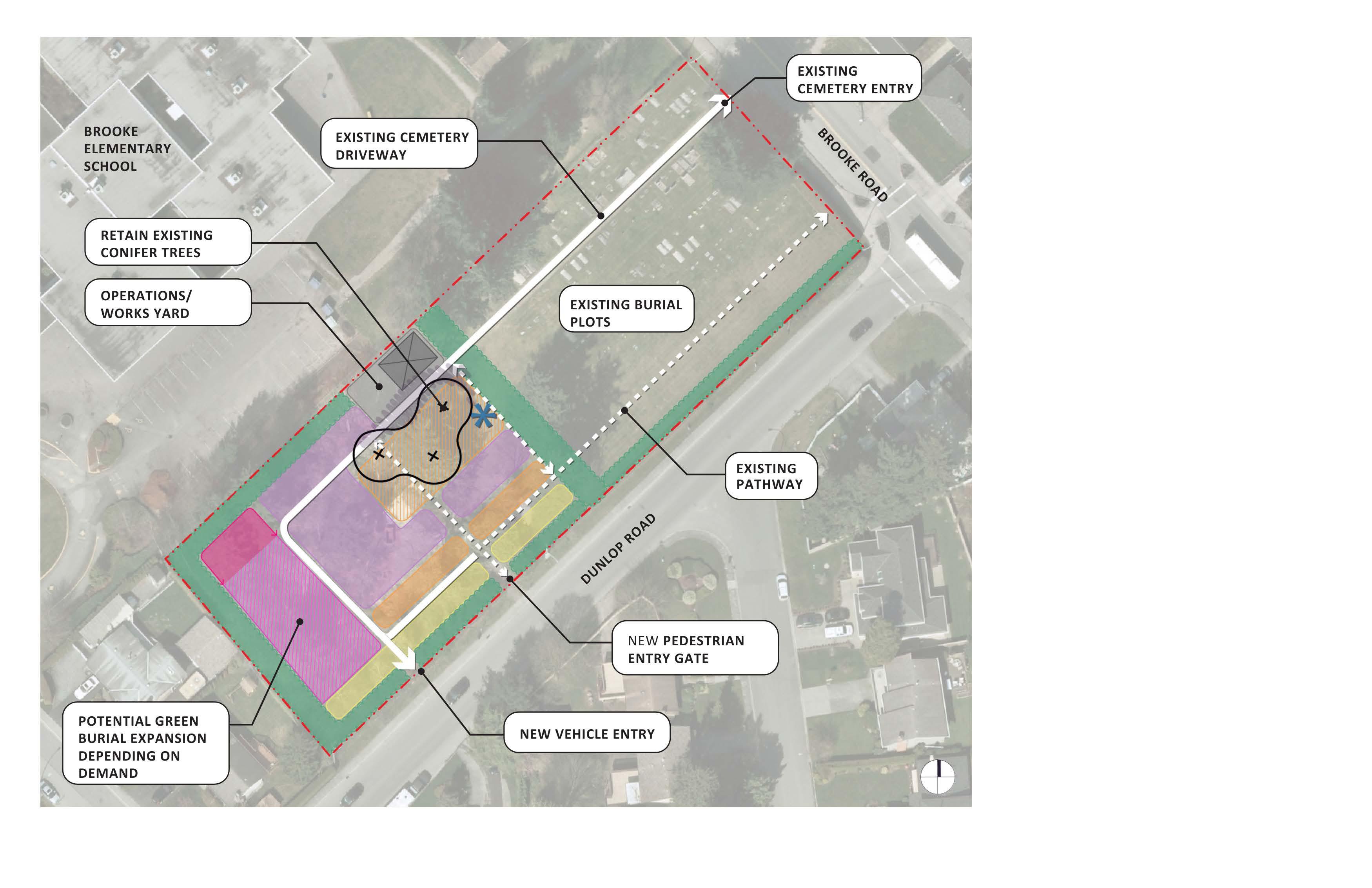 The City is exploring options to increase capacity in existing cemeteries. Concepts on the following boards outline these options. When capacity is eventually exhausted, the city will need to consider whether to establish a new cemetery, or phase out cemetery services.