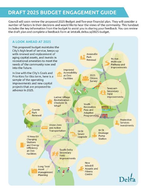 The City is hosting a several week program to help diverse populations advocate for themselves and participate in government processes. The City invited participants registered in the program to attend a focus group to learn more about the budget and share their views. Seventeen residents representing diverse backgrounds and incomes participated. Participants mainly asked about how to surface concerns about specific roads and intersections such as accessibility for pedestrians on 120th and safety of Dunlop. Participants were advised to sign up for the DeltaConnect app to report concerns. These concerns were also recorded and sent to staff immediately to respond or address.