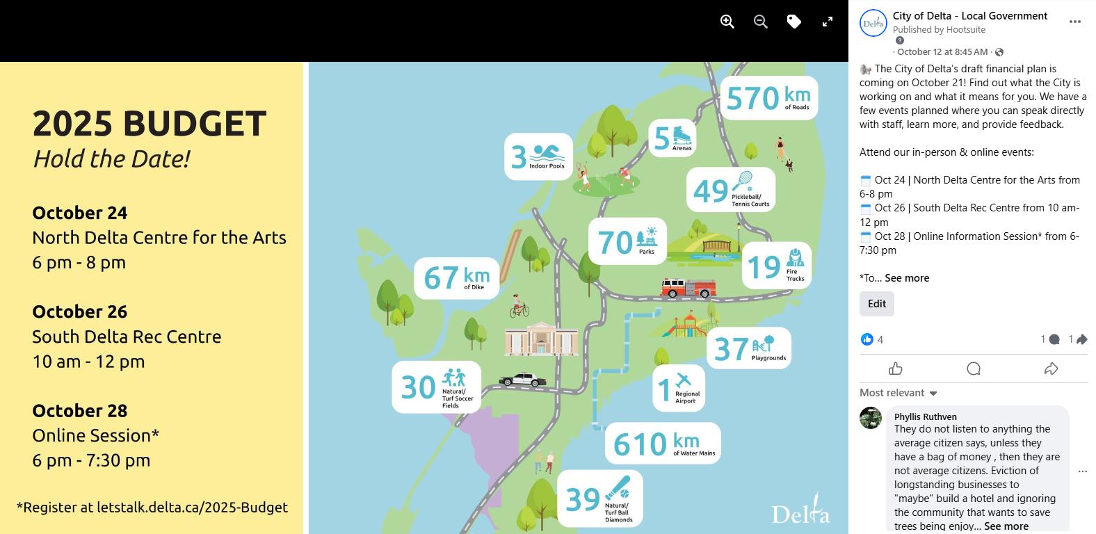 • Need for Long-Term Investment in Community Infrastructure: Supporters appreciate the budget’s approach to invest in community infrastructure, emphasizing that as Delta grows, maintaining and expanding parks and recreational amenities is essential to preserve community quality and character.