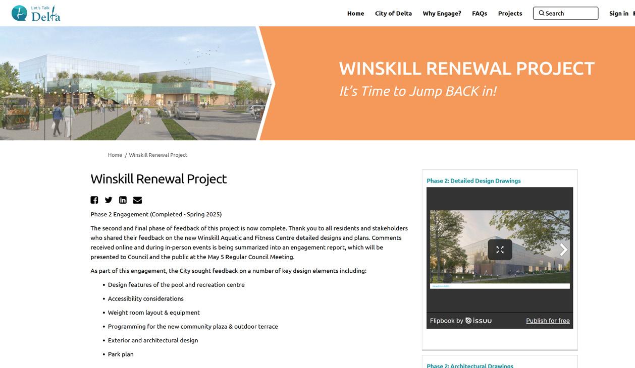 Oppositions to Tsawwassen Town Centre Development – The Winskill Renewal Project engagement program was impacted by community conversations surrounding another nearby proposal, the Tsawwassen Town Centre redevelopment. As part of that application, a new library was proposed as the community amenity contribution, prompting residents to consider whether the library could instead be co-located within the planned Winskill facility. At the Regular Meeting on April 14, 2025, Delta Council considered a motion to direct staff to conduct a more detailed analysis of the options and implications related to incorporating a library into the Winskill Renewal Project and chose not to proceed.