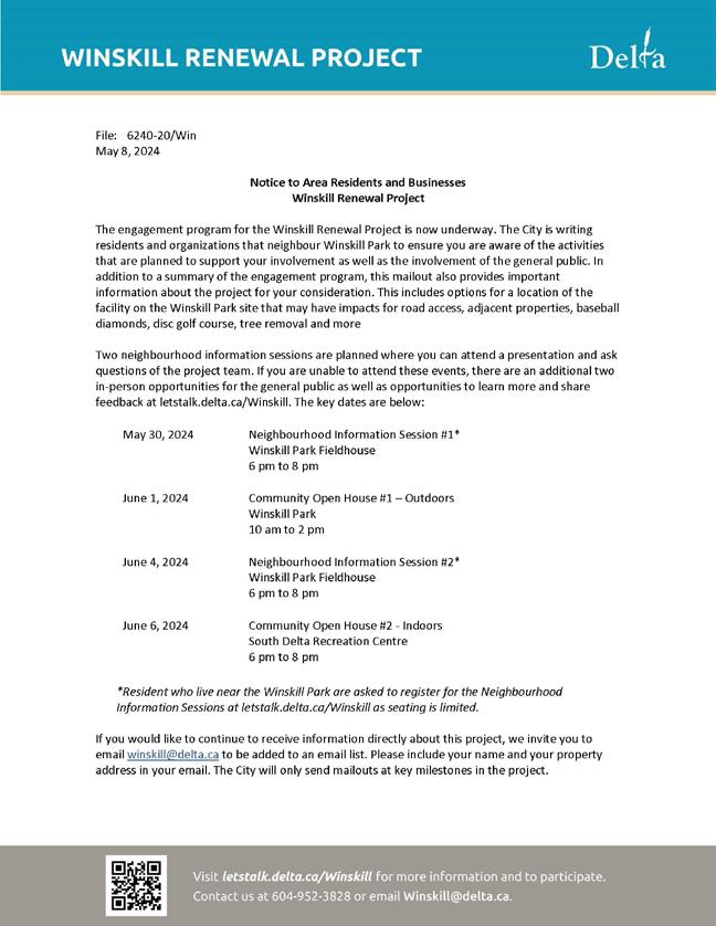 Given the scale of the project and the role of the facility in the community, the City is committed to ensuring residents have the information and opportunities they need to get involved. In addition to ongoing communication activities, there are two phases in the engagement program where the community is invited to share their views on the Winskill Renewal Project: