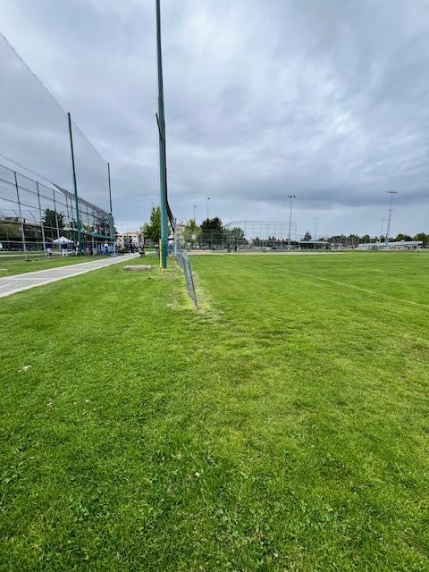 ✓ There is a large swale in the left field for drainage. This is important for safety as a player tracks a fly ball to the left field area and approaches the home run fence. Kids may fall towards the fence.