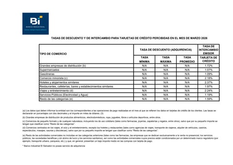 Tasas de Intercambio TC Marzo 2026/Publico