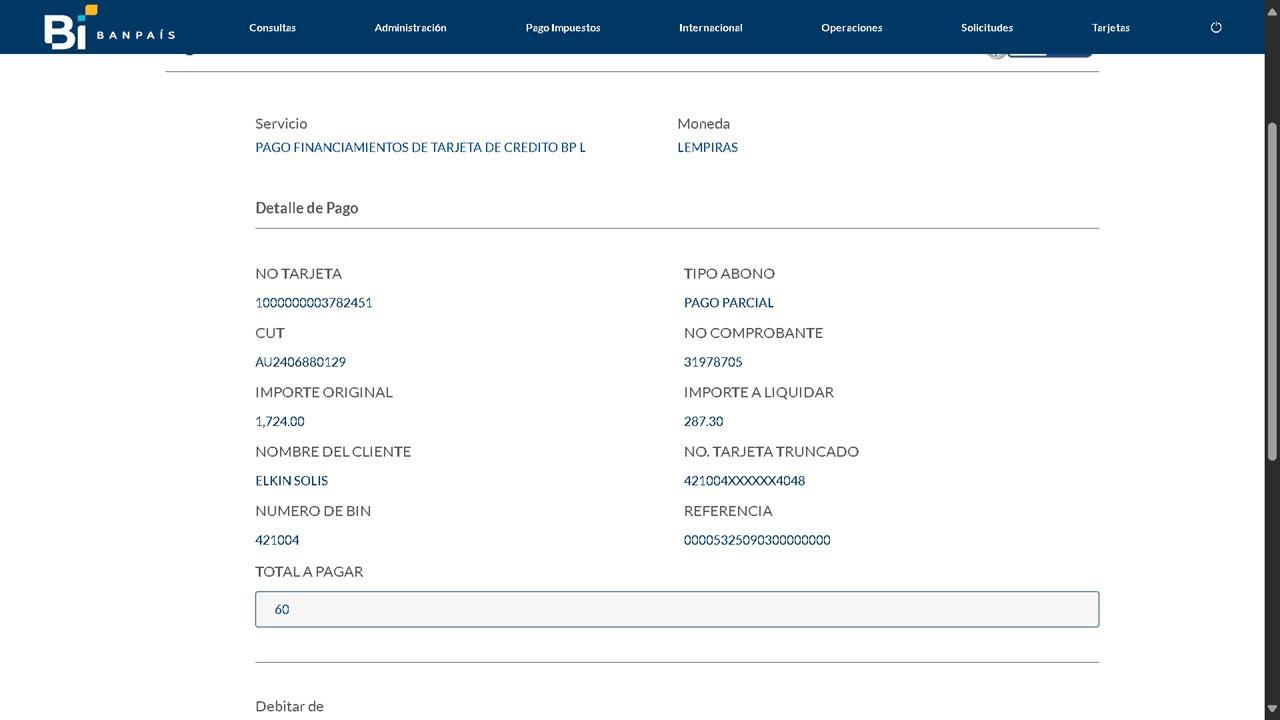 Selecciona la cuenta de donde se debitará el pago y presiona Pagar.