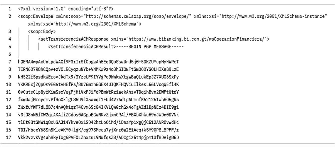 RecepcióndeMensajesEncriptados:LaAPIrecibeelmensajedetransferenciadel clienteenunformatoencriptado(GPG).Estemétodoaseguraquelosdatos sensiblessemantenganprotegidosdurantelatransmisión.