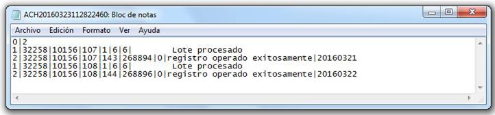 Mensaje de retorno del lote.