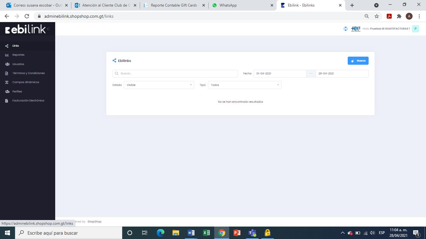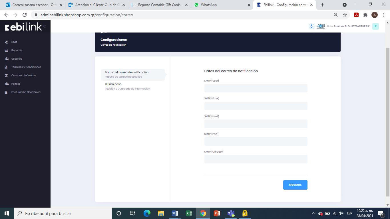 Links Sección 4: Menú reportes Sección 5: Menú usuarios Sección 6: Términos y Condiciones Sección 7: Campos dinámicos Sección 7: Menú perfiles