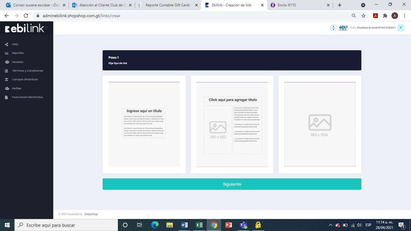 Establecer parámetros de pago como: monto establecido (que el cliente no pueda cambiar el monto) o un link abierto, tipo de pago, red social a compartir, así mismo un código interno de registro y nombre para llevar el control del producto.