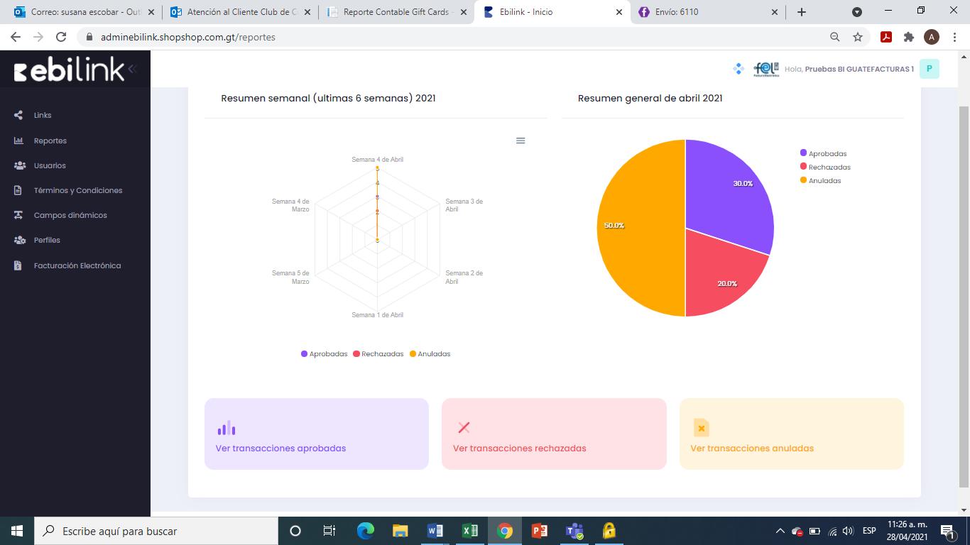 Esta opción permite visualizar en tiempo real, el resumen de las transacciones tanto aprobadas, rechazadas y anuladas.