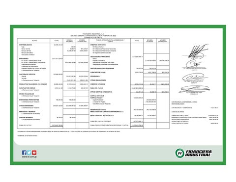 FINANCIERA INDUSTRIAL, S.A. BALANCE GENERAL CONDENSADO AL 28 DE FEBRERO DE 2022 (CIFRAS EN QUETZALES)