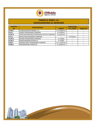 Fianzas El Roble, S.A. (la “Aseguradora”) fue constituida bajo las leyes de la República de Guatemala el 8 de noviembre de 1982 para operar por tiempo indefinido. Su principal actividad consiste en realizar operaciones de seguros y reaseguro de caución en cualquiera de sus formas y fases de conformidad con el Decreto Número 25-2010 del Congreso de la República de Guatemala que corresponde a la “Ley de la Actividad Aseguradora”; y también puede realizar operaciones