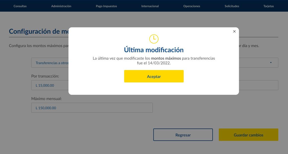 Verás un mensaje que indica la última fecha en la que se modificaron los montos, haz clic en Aceptar.