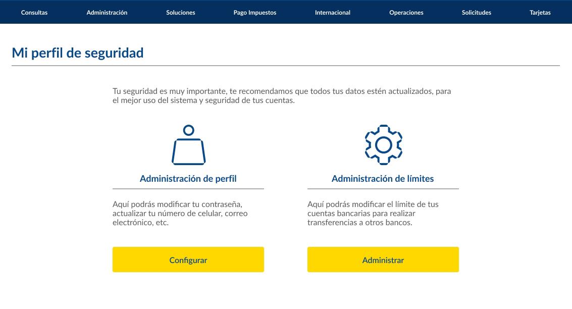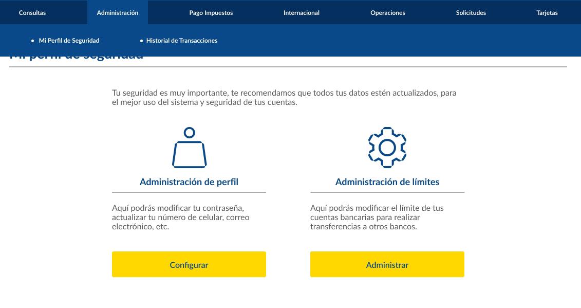 Ingresa al menú Administración, haz clic en Mi perfil de Seguridad y luego en Administrador.