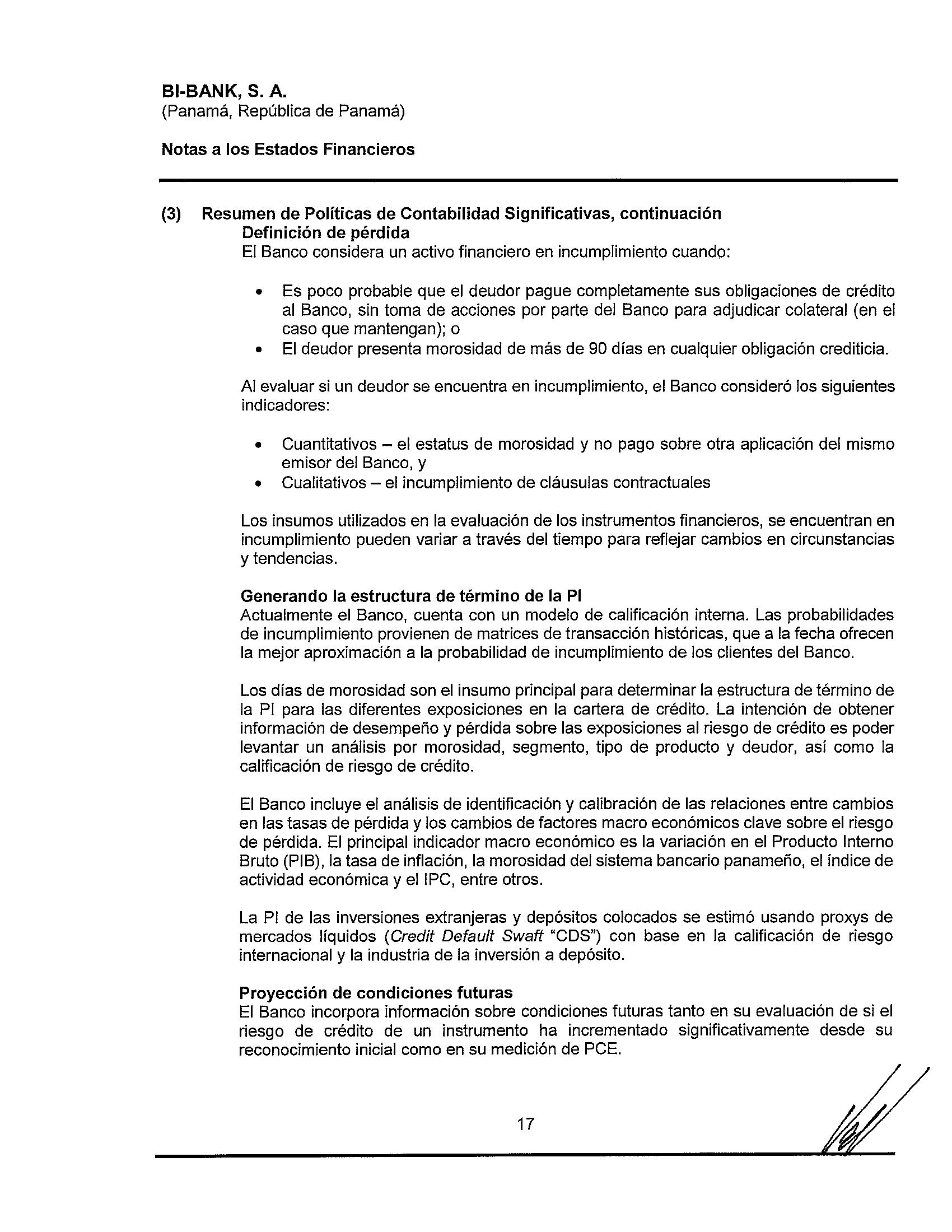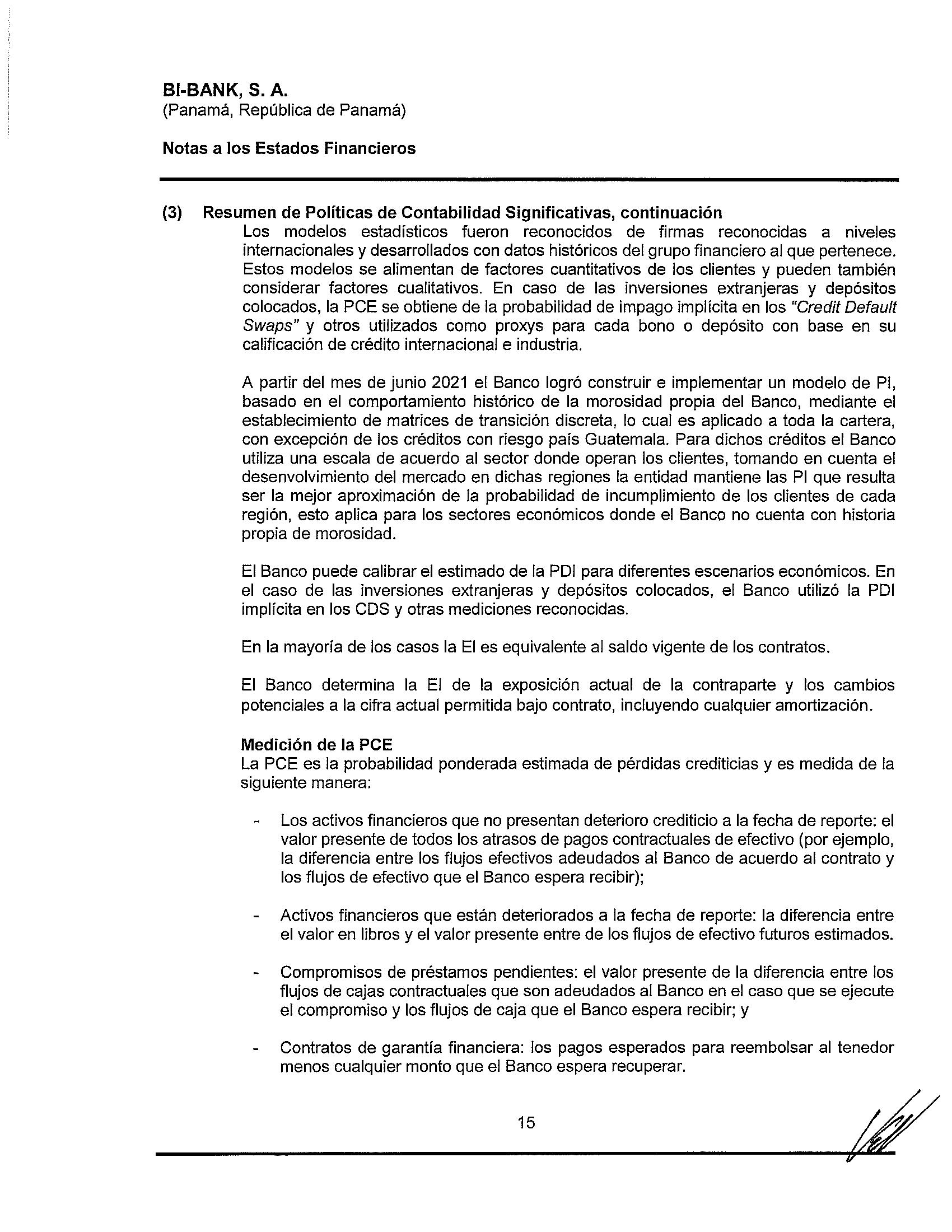 Para efectos de cumplimiento con normas prudenciales emitidas por la Superintendencia de Bancos de Panamá, el Banco debe preparar un cálculo de la reserva de crédito con base a lineamientos regulatorios. En caso de que el cálculo regulatorio resulte mayor que el cálculo respectivo determinado bajo NIIF, el exceso de reserva se reconocerá en una reserva regulatoria de patrimonio.