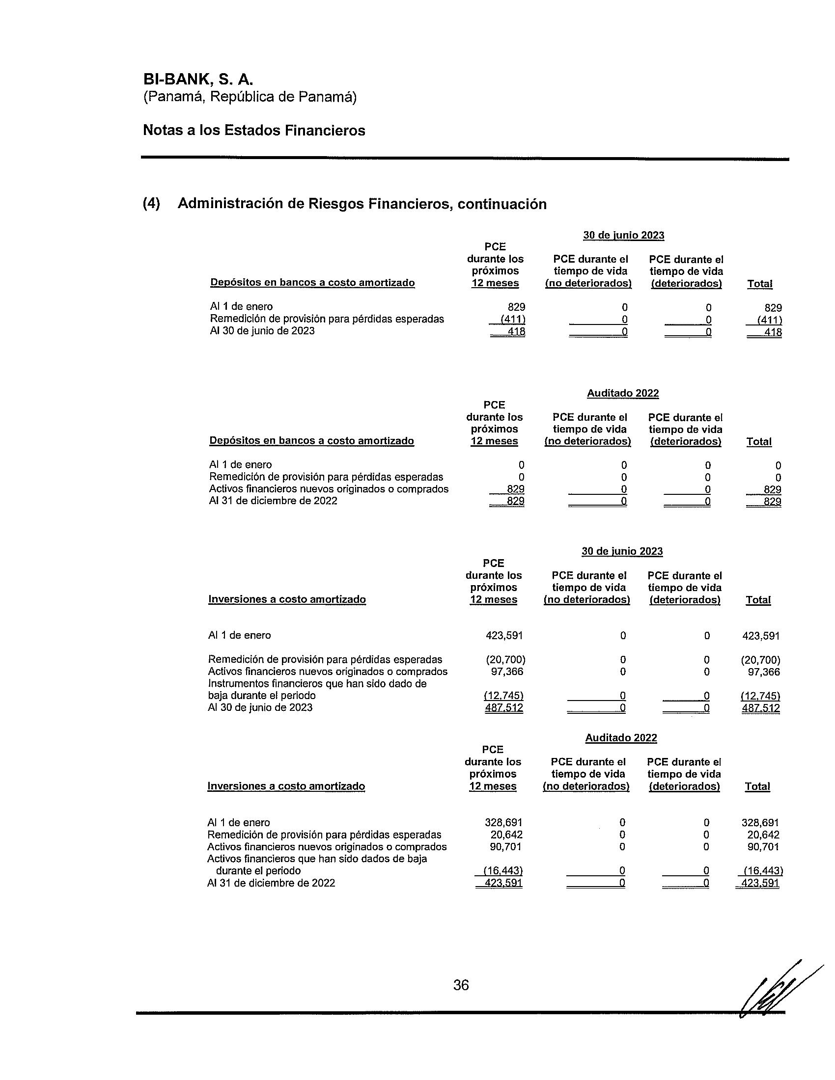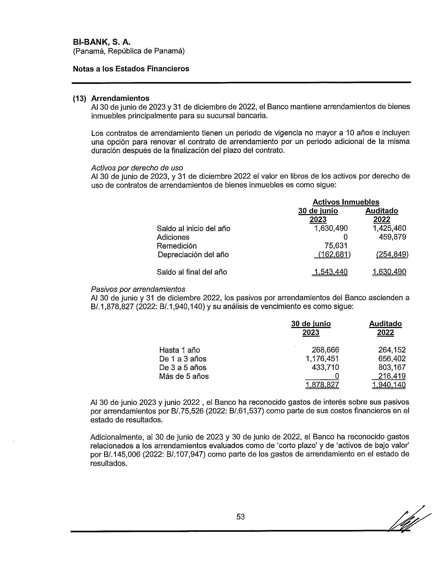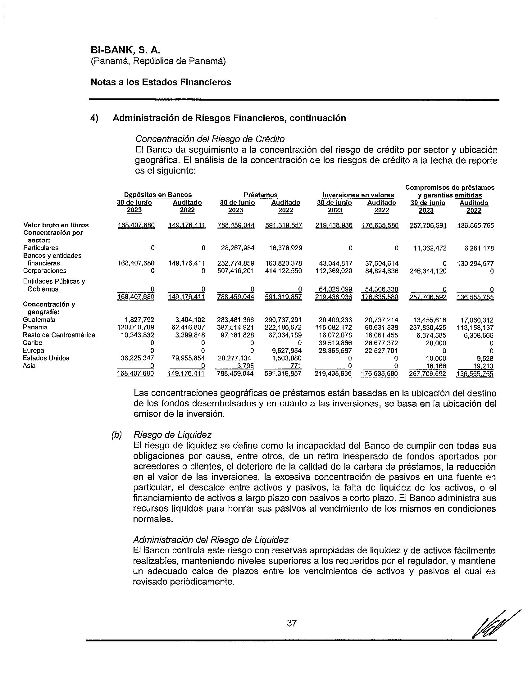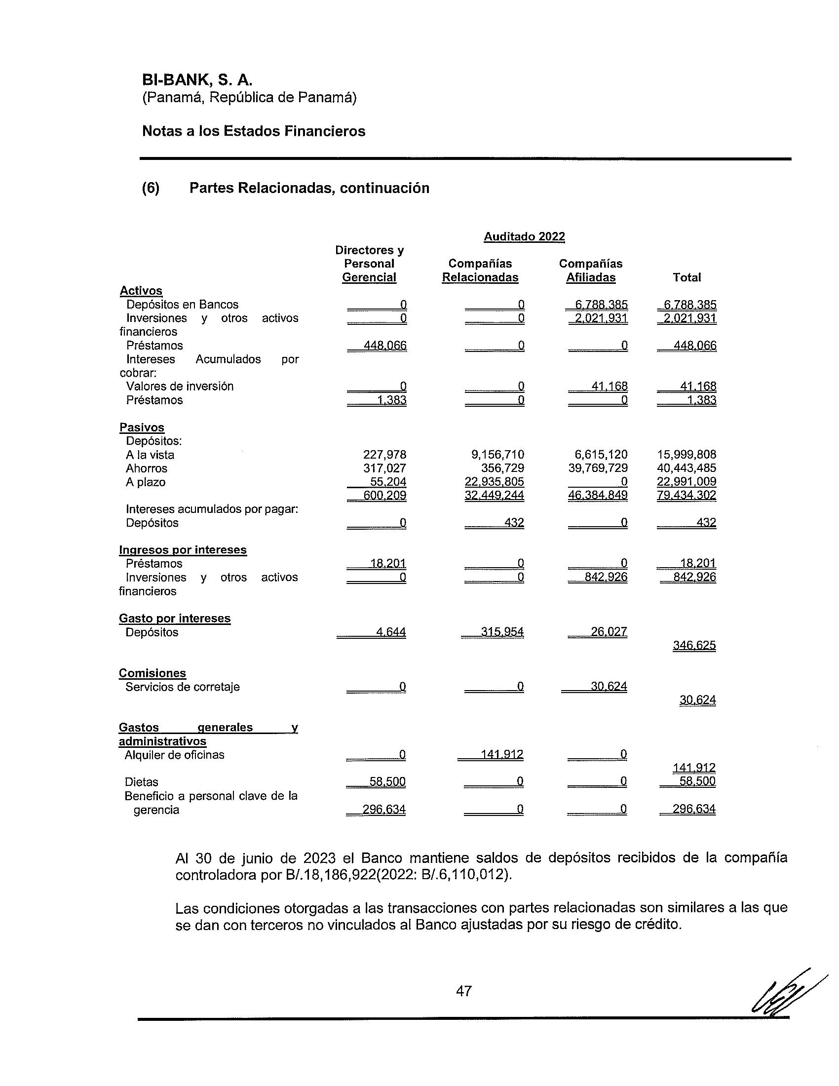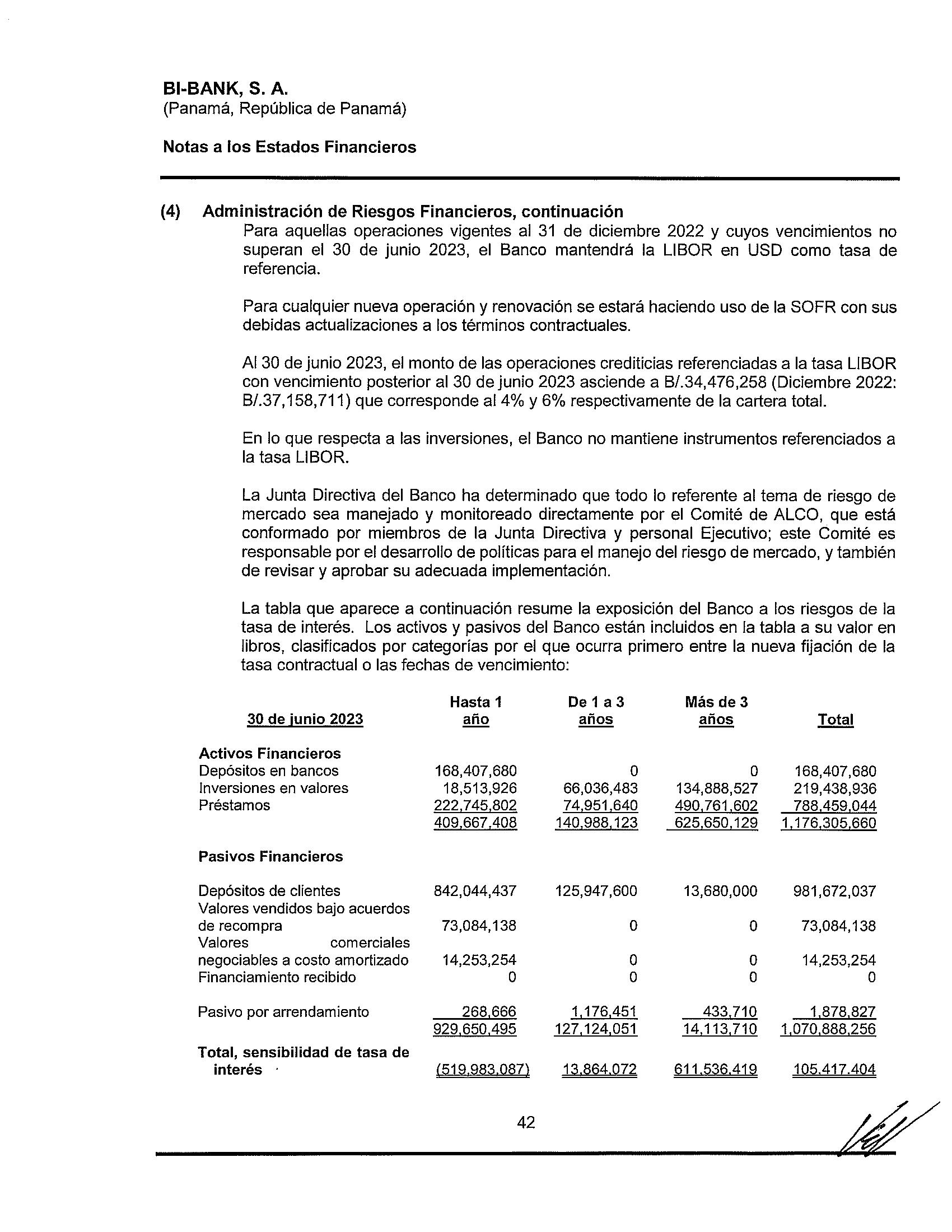 Al 30 de junio 2023 y 31 de diciembre 2022, los préstamos en estado de no acumulación de intereses ascendían a BI.4,183,581 y BI.3,796,040, respectivamente.