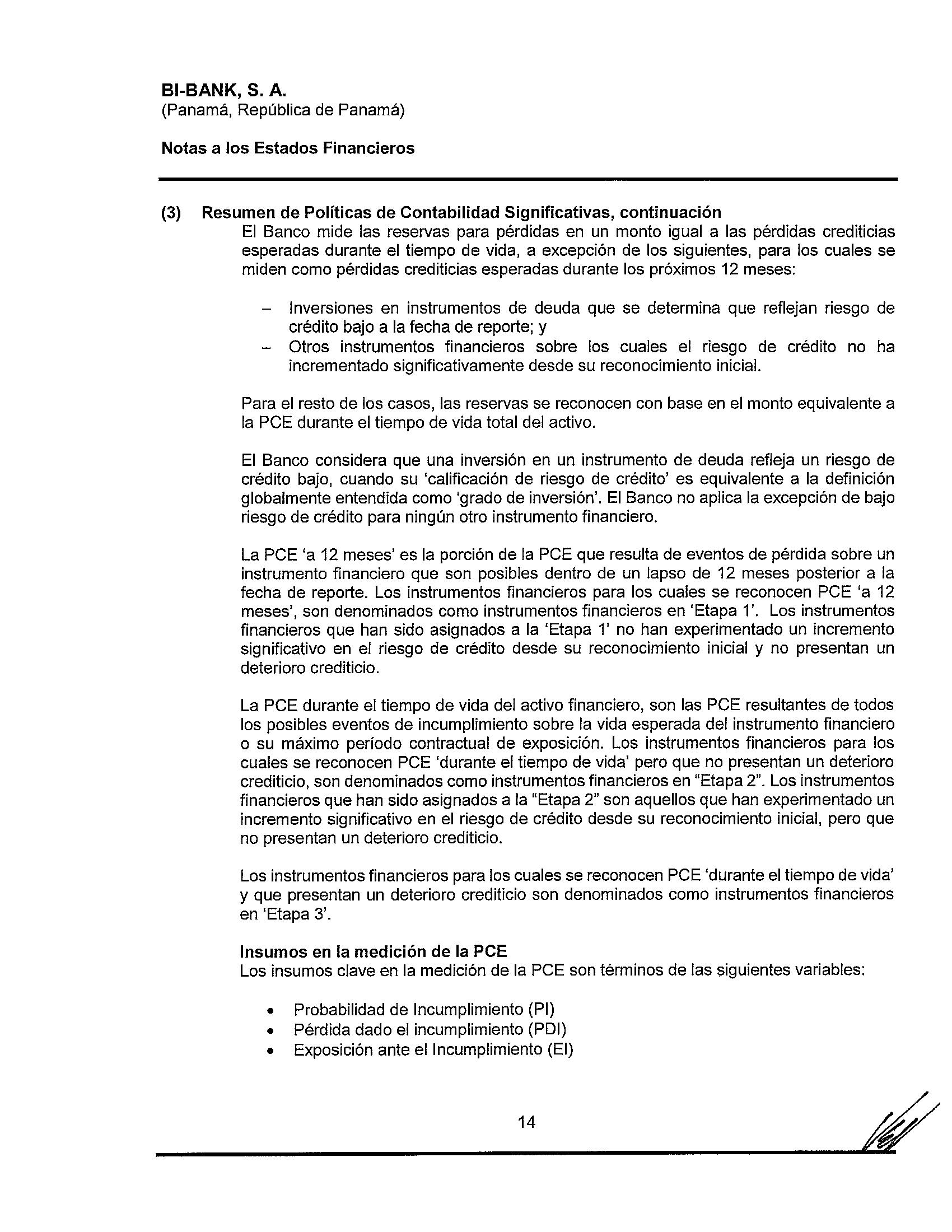 BI-BANK, S. A. (Panamá, República de Panamá)