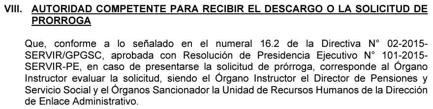 Se inicia con la notificación al servidor civil de la comunicación que determina el inicio del procedimiento administrativo disciplinario, brindándole un plazo de cinco (05) días hábiles para presentar su descargo, plazo que puede ser prorrogable.