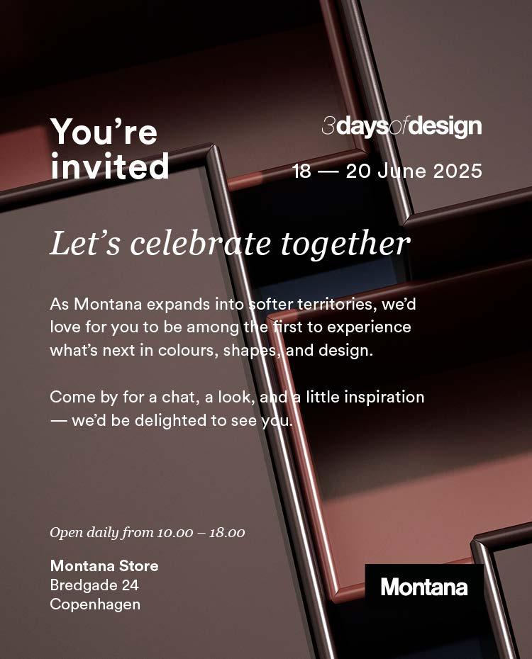 For this year’s 3daysofdesign, Montana Furniture expands into exciting, softer territories. Step into their Copenhagen venues to explore fresh perspectives on colour, shape, and design. Among the novelties is a new direction that speaks to comfort, flexibility, and the evolving way we live. Join inspiring talks, and don’t miss the Backyard Party on Wednesday 18 June!