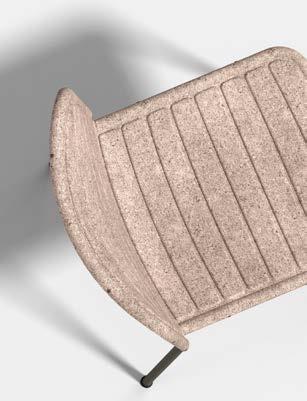 Clockwise from top right: Mater’s Matek material study, HAY’s Boa table made from 75% recycled, post-consumer waste, PLEASE WAIT to be SEATED Flax Stackable chair made from 100% biodegradable materials.