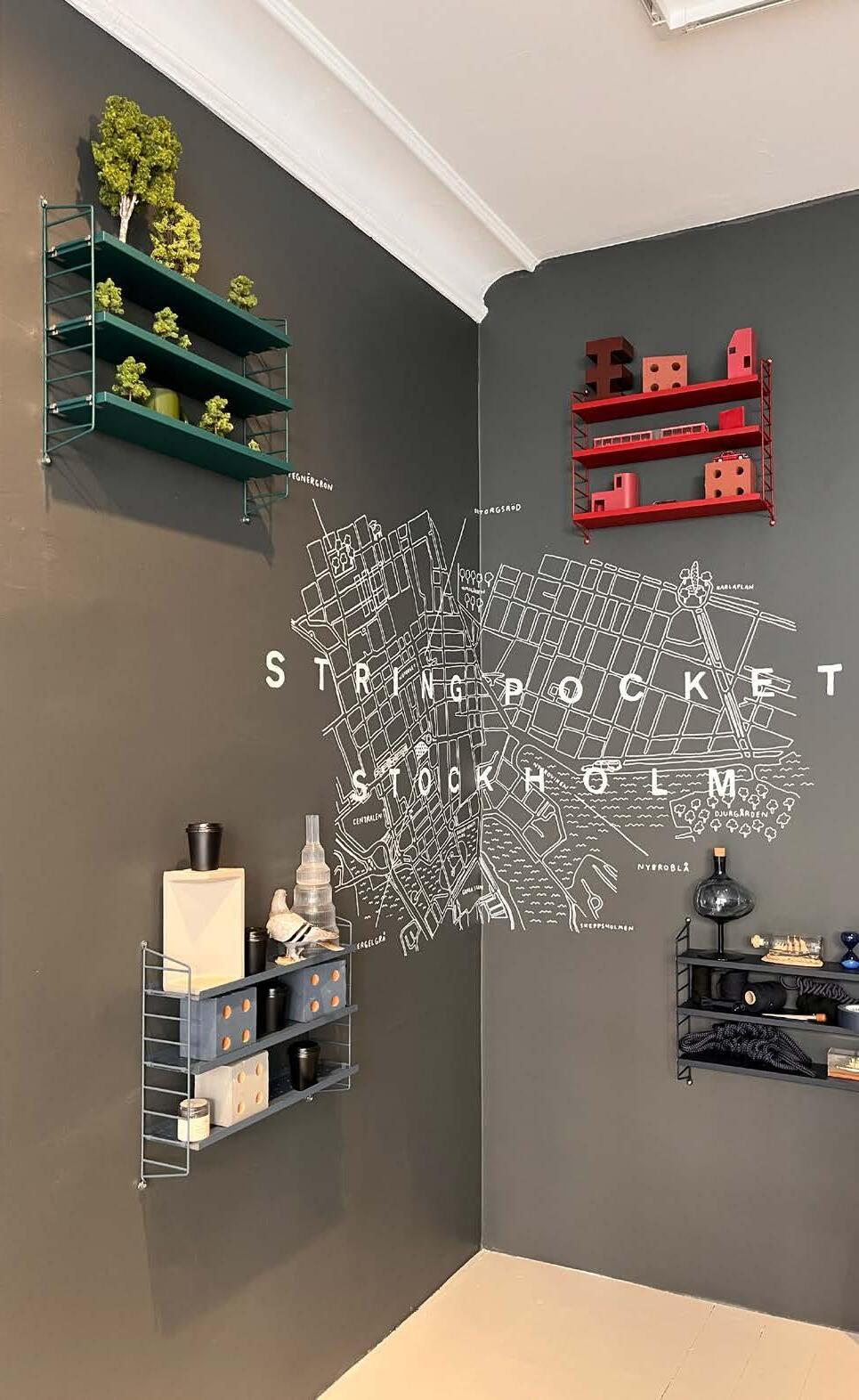 Swedish design company String Furniture exhibited at FRAMING in the Annex, showcasing the modernist classic String from 1949 in a new Dark Grey finish, alongside the ‘String Pocket Stockholm’ series inspired by the Swedish capital. The space was transformed into a ‘modern office’ setting, featuring the modular Centre Centre system by Form Us With Love, the classic Pira G2 from 1954, and Relief by TAF Studio.