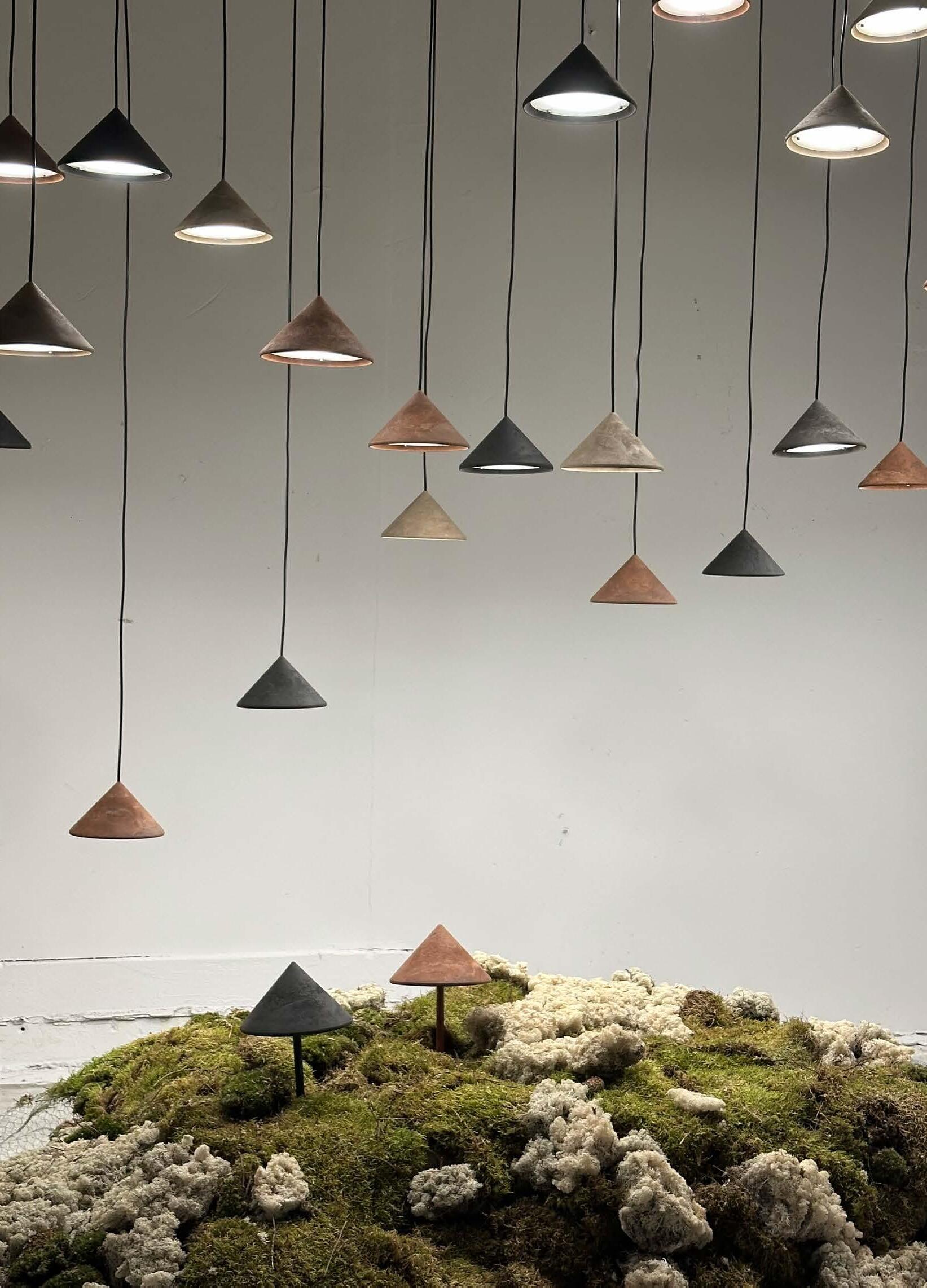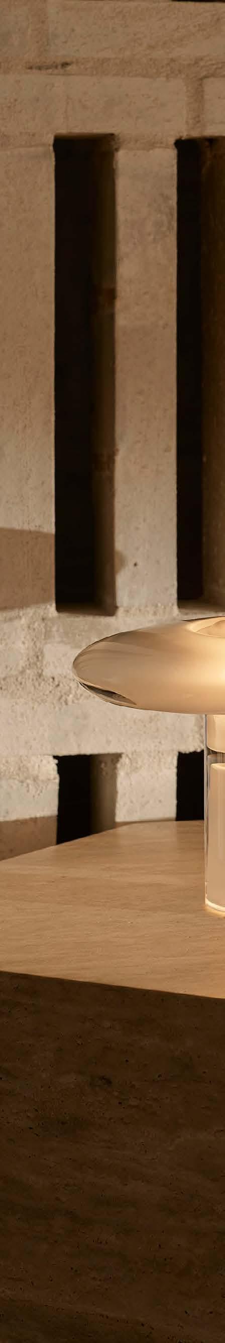 Opposite Page // Mater Terra Lighting Collection by OEO Studio – Crafted from e-waste and coffee residue, Terra transforms industrial waste into elegant, sculptural lighting. It exemplifies upcycling at a high design level.