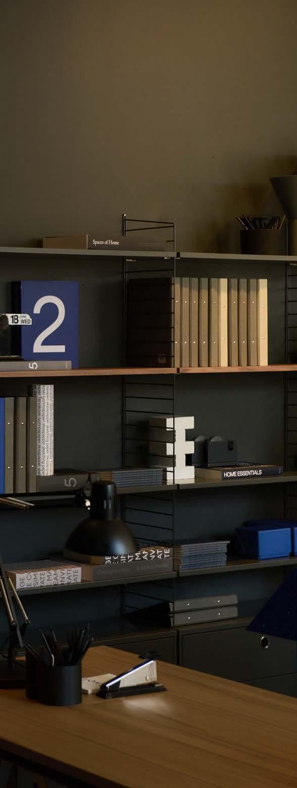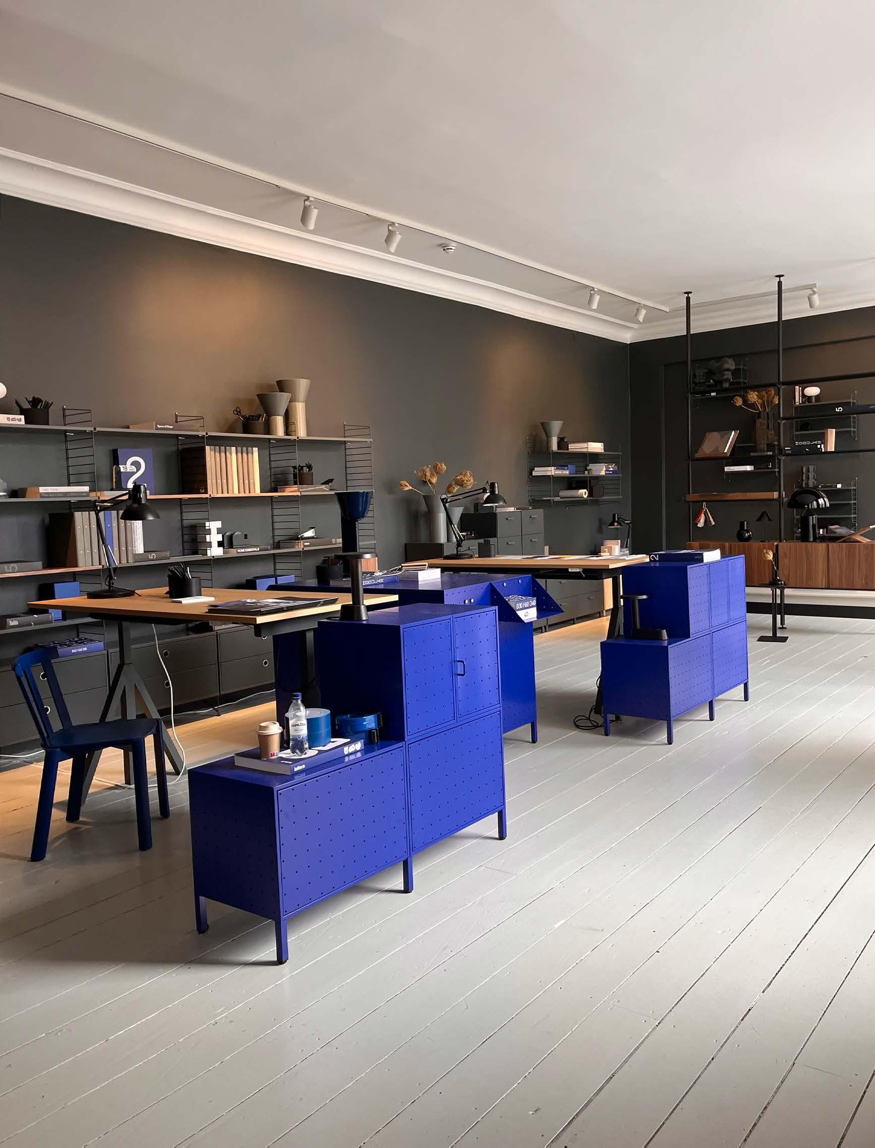 This Page // &Tradition Archivo Shelving by Jaime Hayon (top), String Centre Centre in ultramarine blue