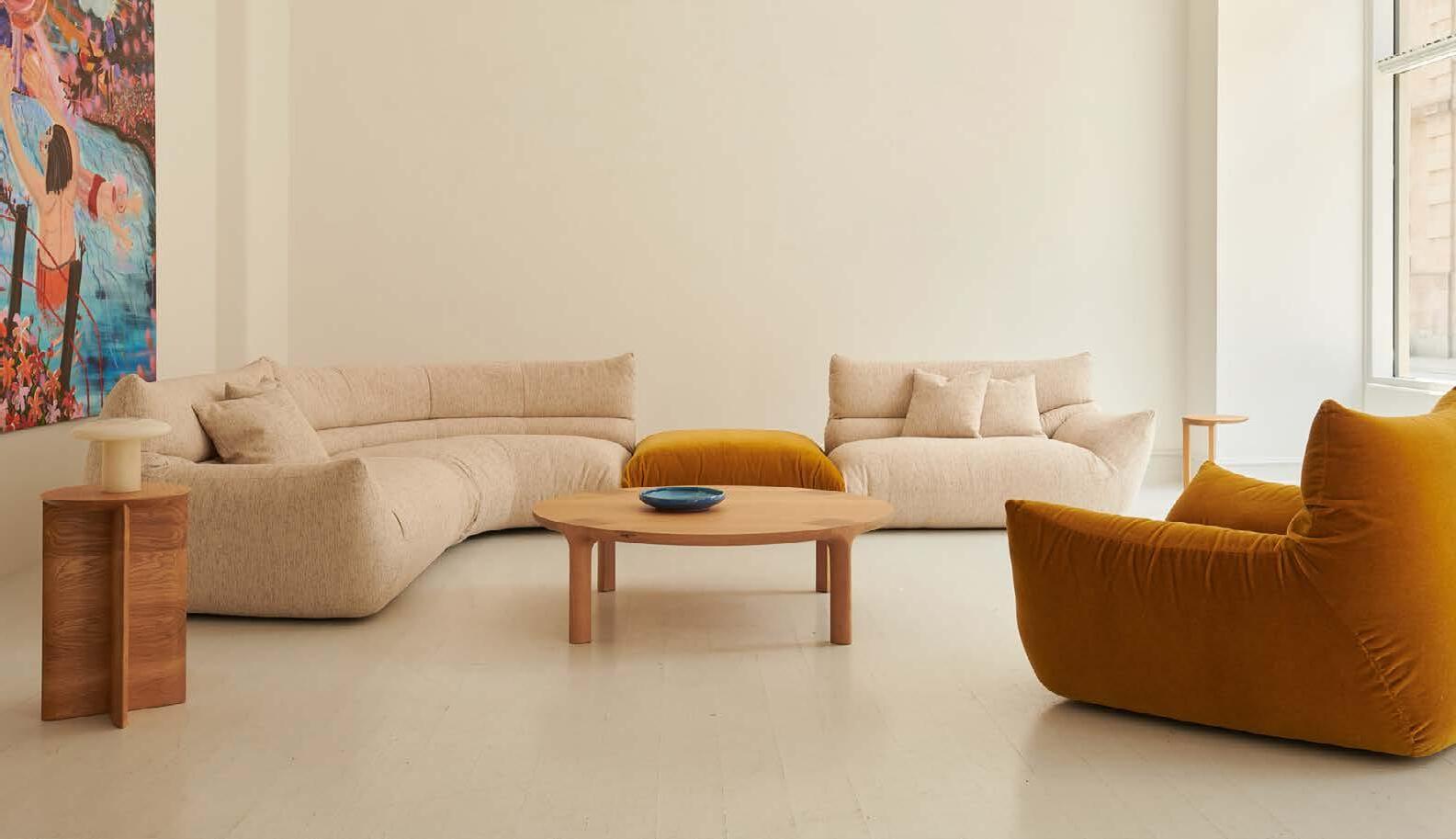 This year’s sofas embraced comfort as a design statement. The focus shifted toward plush, sculptural forms that invite relaxation and emotional connection. These pieces balance aesthetic presence with tactile appeal, often working as standalone icons or flexible arrangements.