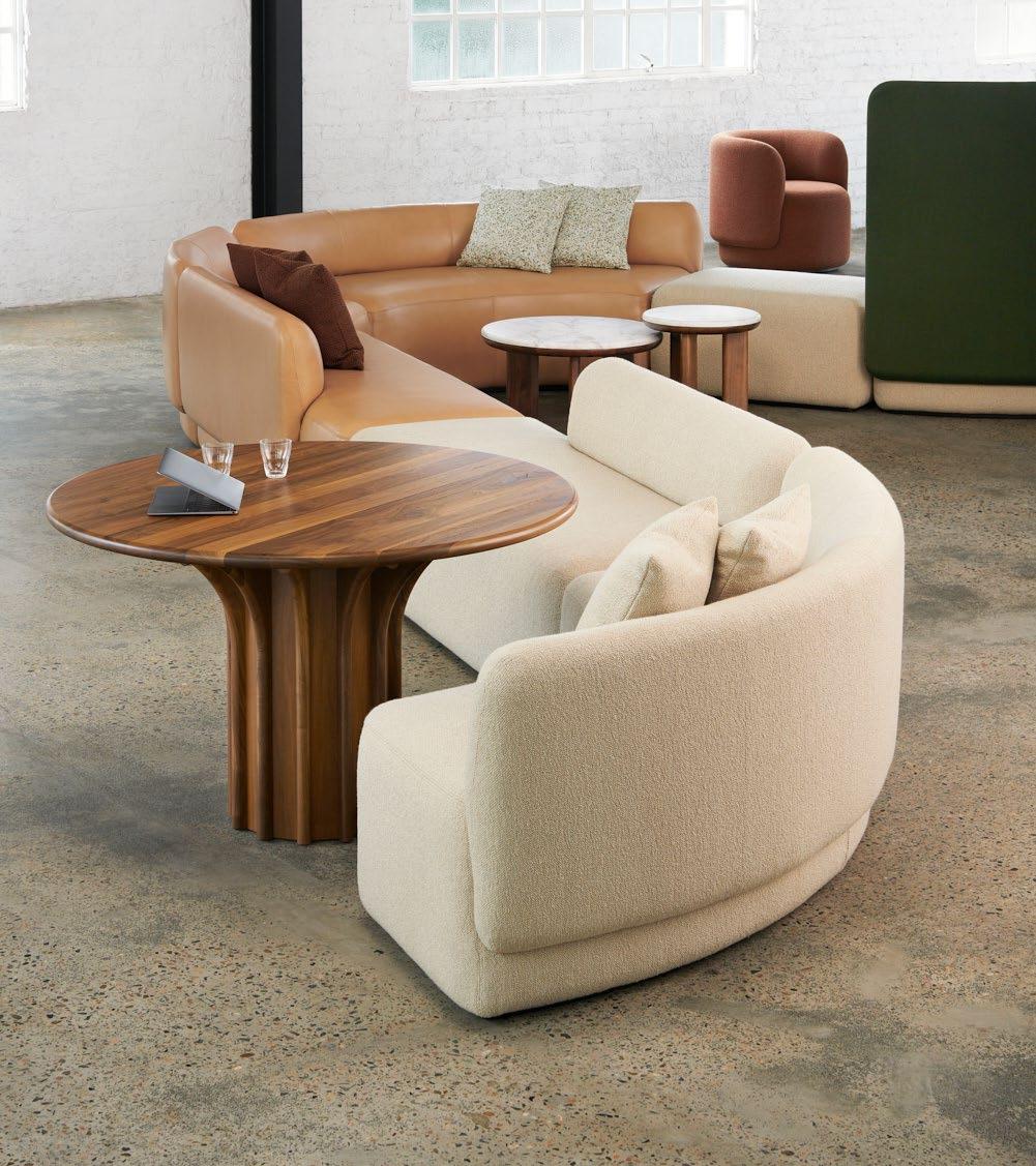 lincoln is available in multiple curved, straight and angled modules, plus single seat and ottoman sizes that can stand alone or be configured to create large dynamic settings. sofas can be customised to have arms, no arms or closed sides to create side by side settings as well l shaped configurations. the upholstered seat, back and arms are all separate components fixed to a timber base sled, which offers even more customising with mixed upholstery options. this is also an advantage when it comes to installing large pieces on site and the future refinishing or module customising after delivery.