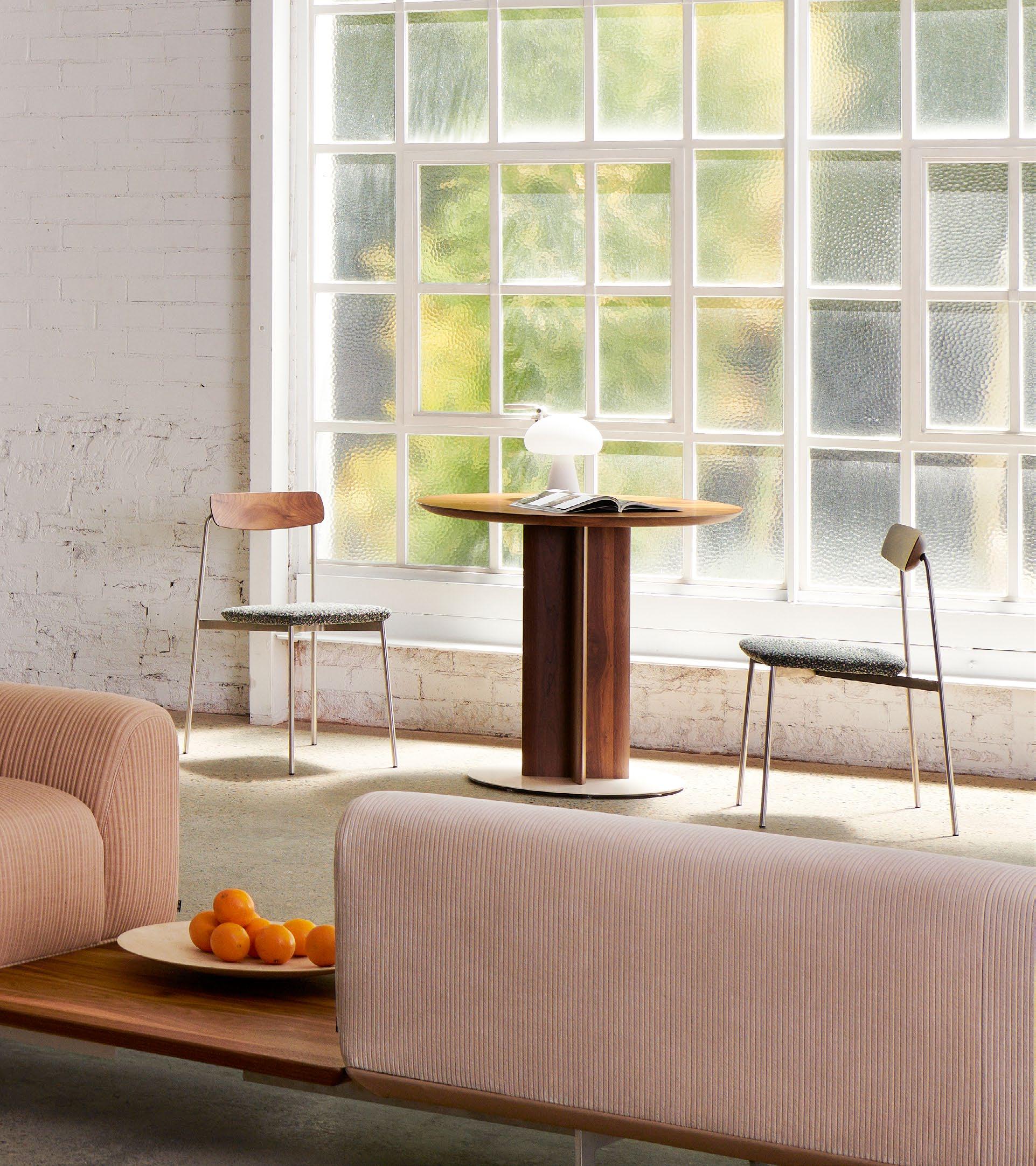 inspired by sydney’s iconic mlc centre by architect harry seidler, rib is the first pedestal table in the nau collection. with a striking architectural aesthetic, rib’s circular form offer a softness within commercial and residential spaces. visually light but deceptively robust, the fluted ribs allow maximum stability in their elevation of the tabletop. designed for meeting, conversation and togetherness, rib is an inviting and functional table that allows for optional integrated power and data supply. rib is available in walnut, oak, ash and black stained ash.
