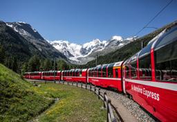 Die Alpenüberquerung mit dem Bernina Express ist sicherlich eine der spektakulärsten. Unterwegs rollt der Bernina Express filmreif über den 65 Meter hohen Landwasserviadukt, das Wahrzeichen der Rhätischen Bahn und UNESCO-Welterbestätte. Insgesamt fährt man von Chur nach Tirano durch 55 Tunnels und über 196 Brücken. Dabei passieren die Reisenden phänomenale Sehenswürdigkeiten wie die MontebelloKurve mit Blick auf das Berninamassiv. Oder den Morteratsch-Gletscher, die drei Seen Lej Pitschen, Lej Nair und Lago Bianco, die Alp Grüm und das Kreisviadukt von Brusio. Im Sommer kann die Reise im Bernina Express Bus von Tirano weiter bis nach Lugano verlängert werden.