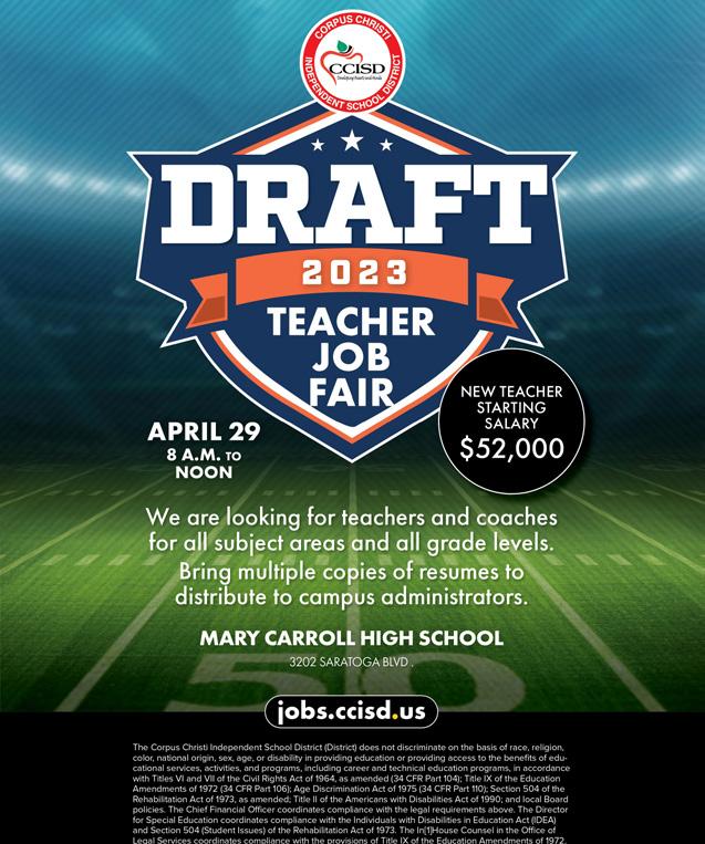 Do you know someone who would be a great fit for #TeamCCISD? Let them know about our Teacher Job Fair happening on April 29 at Carroll High School! Job postings may also be found on our website.