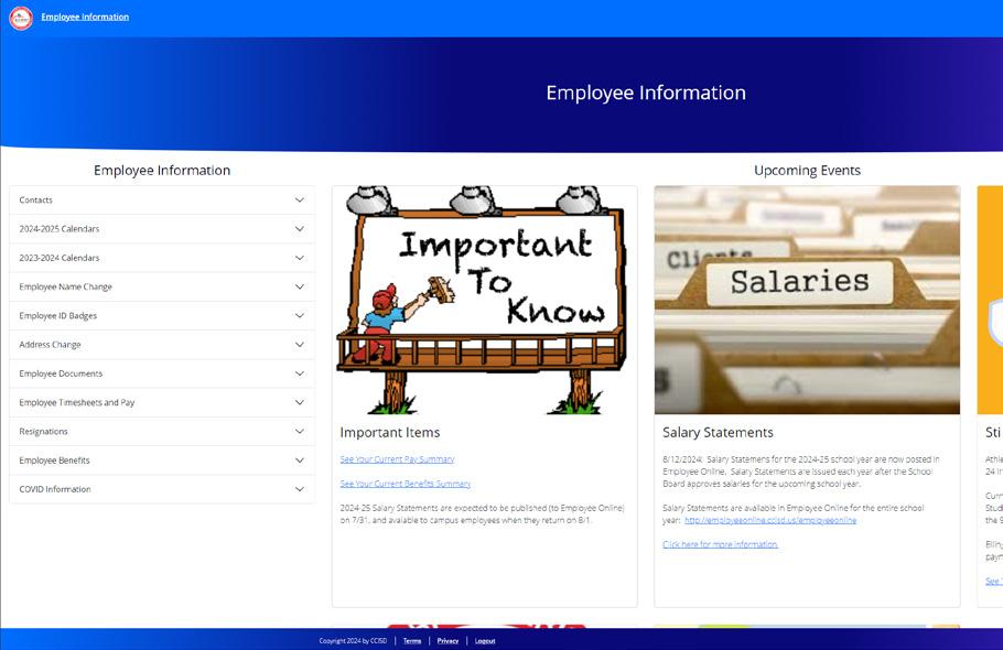 Is your contact information up-to-date? Log on to the CCISD Employee Online Site to update your information. In the website’s menu, click “personal information,” and update as needed.