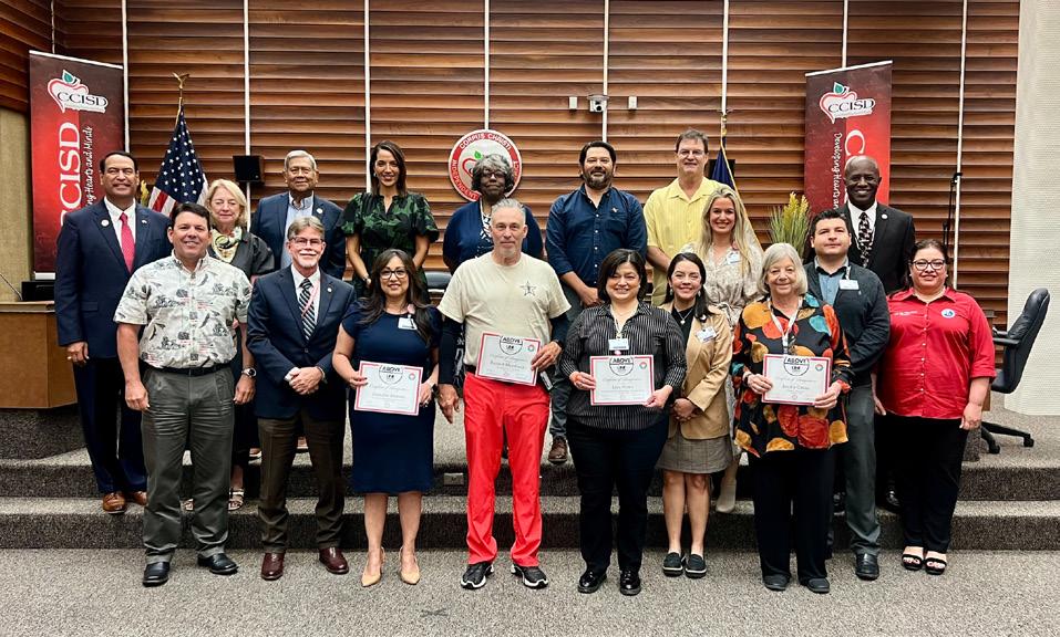 During the Nov. 11 Board Meeting, the Board recognized the Above the Line employee of the month winners and Jane Bell for her service to the Board of Trustees. We thank Jane Bell for her many years of service to CCISD students and staff.