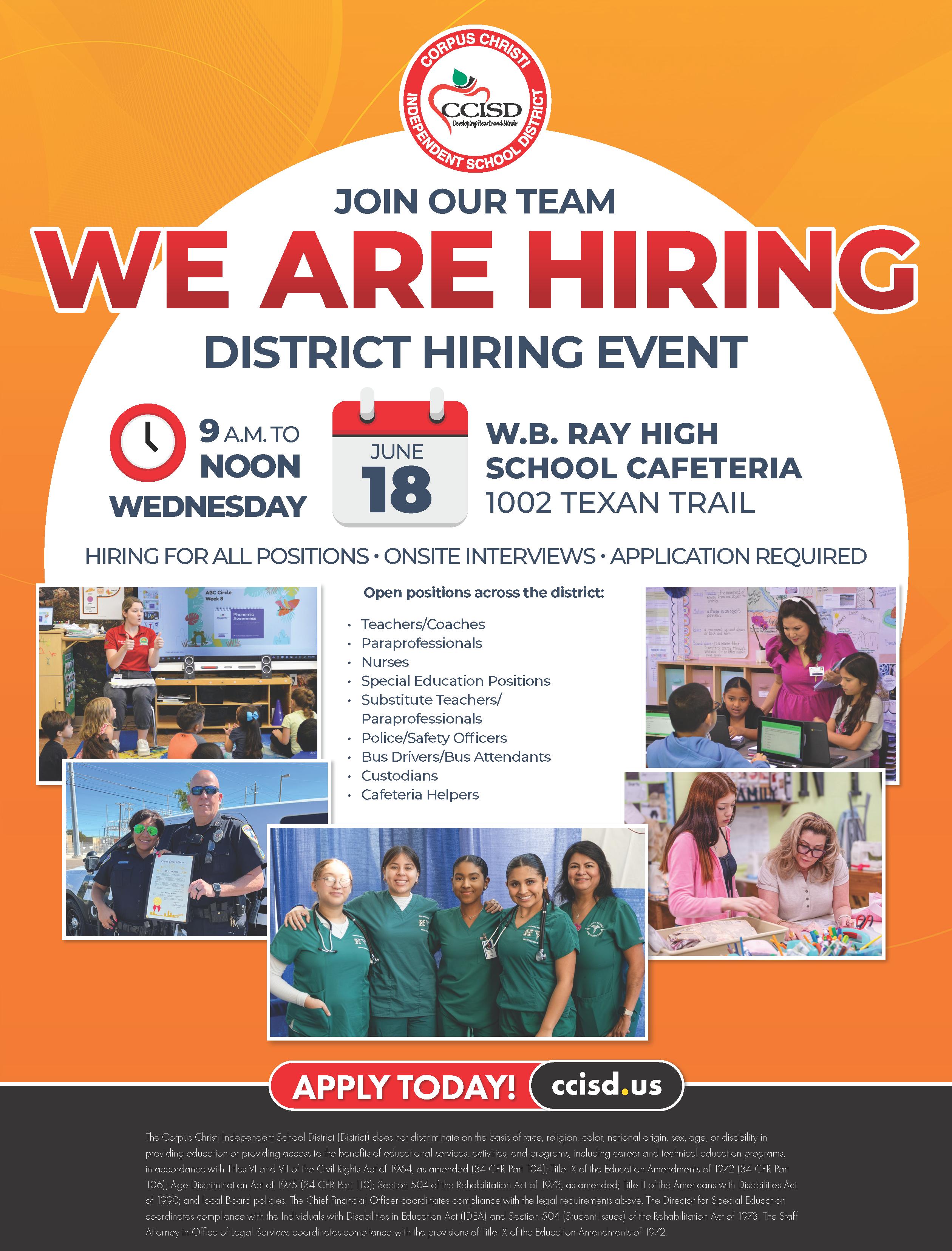 Do you know someone who would be a great addition to CCISD? Let them know about our upcoming job fair.
