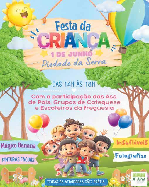 fláveis, o “mágico Banana”, atividade física e desportiva, jogos, música, e muito mais para brincar e divertir. Esta iniciativa terá a participação das Associações de Pais, Grupos de Catequese, e Escoteiros da freguesia. A entrada é livre e todas as atividades são gratuitas.