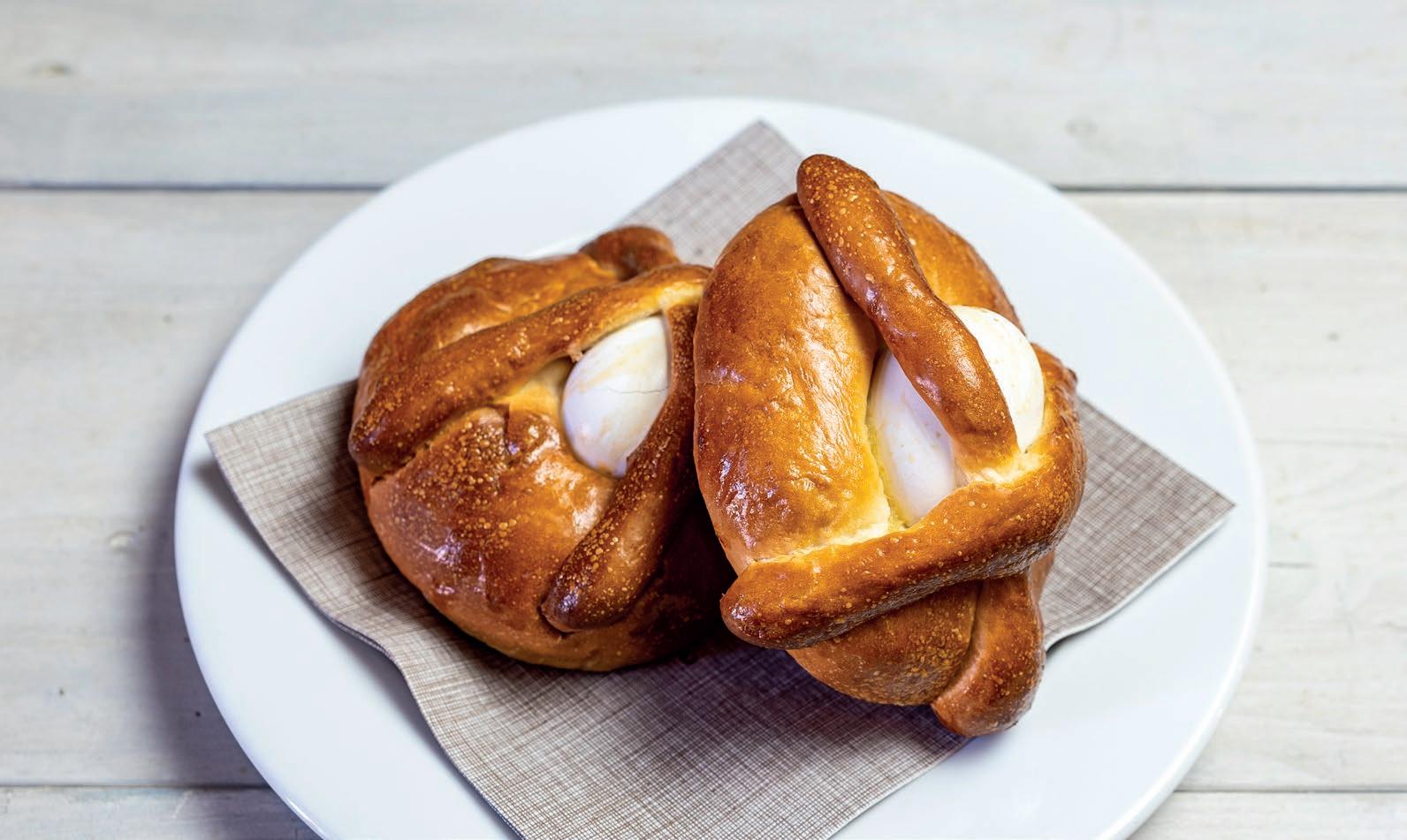 Nella versione tradizionale, l’uovo viene poggiato su una base e tenuto fermo da due trecce di pasta incrociate, ma la fantasia viene lasciata libera di spaziare, così si trovano anche forme più artistiche, come cestini, bamboline, colombe e persino coniglietti.